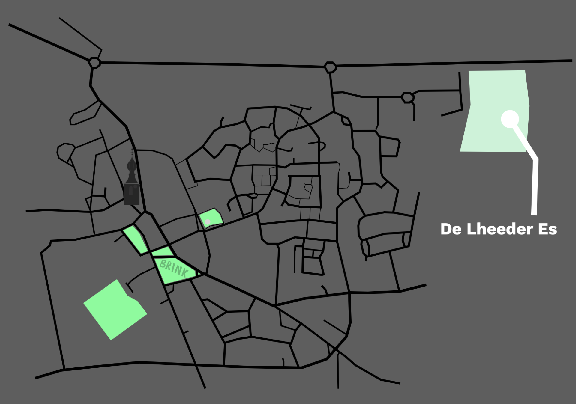 De Lheeder Es zal gerealiseerd worden in het Oosten van Dwingeloo. De locatie bevindt zich naast het industrieterrrein en ligt tegen het nieuwbouwplan Valderse 3 aan.